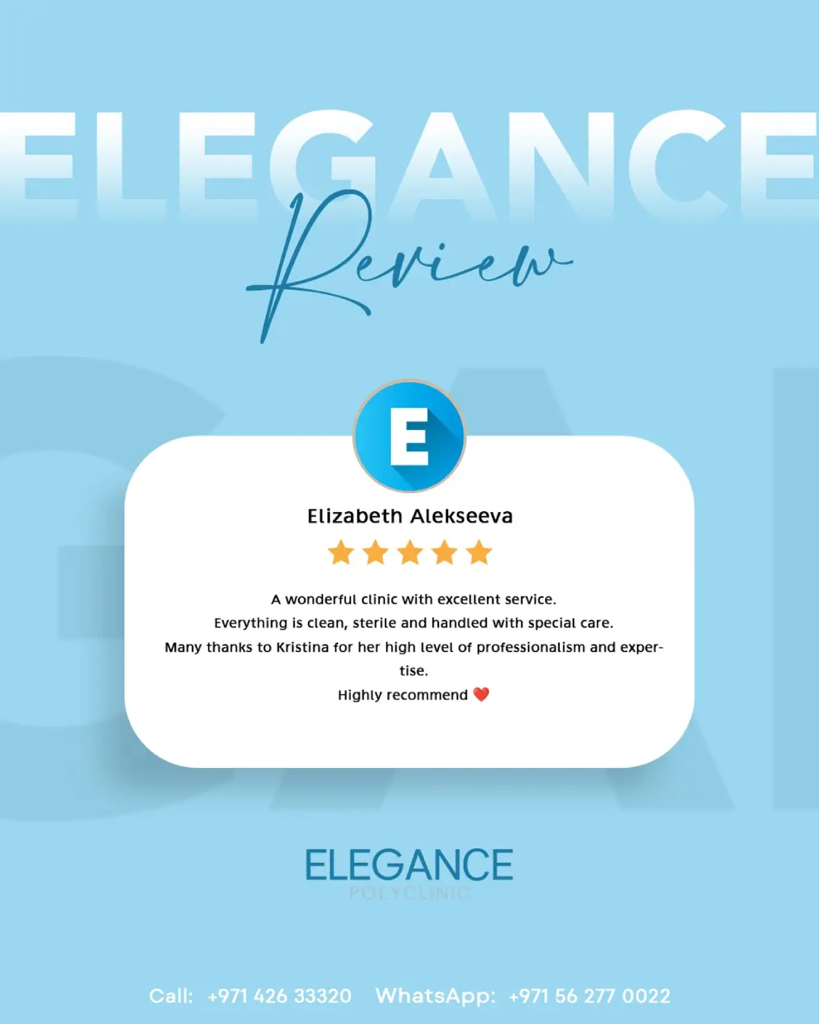 From advanced dermatology and aesthetic medicine to plastic surgery, dental care, and laser therapy, each member of our team contributes to making Elegance Polyclinic one of Dubai’s most trusted destinations for beauty and wellness.